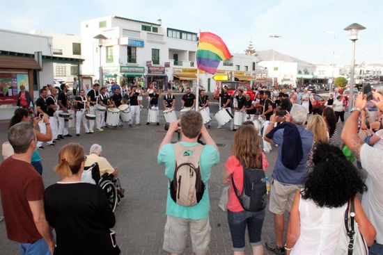 Desde el Consistorio sureño explican este viernes en nota de prensa que la Institución, representada por el concejal de Igualdad, Daniel Medina, y la concejala de Educación, Manuela Rodríguez, izó dos simbólicas banderas coloridas, una, en horas de la mañana, en la fachada de la casa consistorial y otra por la tarde en la calle Limones del núcleo turístico de Playa Blanca, donde el acto estuvo animado por la música de la batucada Villa Pipol y el seguimiento de decenas de vecinos y turistas que participaron del pasacalle.