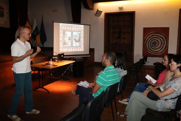La charla, que recorrerá los siete municipios lanzaroteños y La Graciosa, contó con la asistencia del concejal de Cultura de Yaiza, Daniel Medina, y fue presentada por su homólogo en el Cabildo de Lanzarote, Óscar Pérez.