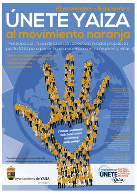 El Ayuntamiento de Yaiza reafirma su compromiso con la lucha contra la violencia machista sumándose a los días naranjas de activismo mundial promovidos por Naciones Unidas que adoptan nombre propio en Lanzarote: Únete Yaiza, campaña que entre el 21 de noviembre y el 5 de diciembre ofrece talleres pedagógicos, artes escénicas y música para orientar, prevenir y reflexionar sobre la violencia a mujeres niñas. El programa completo de actividades, publicado en portada de www.yaiza.es, prevé eventos en el IES Yaiza dirigidos a estudiantes y otros abiertos al público en localizaciones de Yaiza y Playa Blanca.