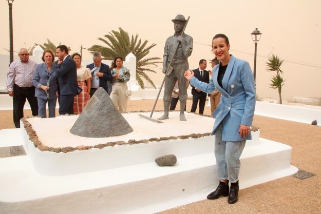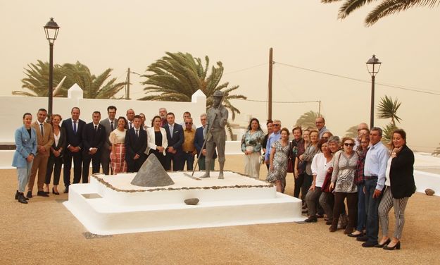 El alcalde asimismo, junto a la concejala de Patrimonio de Yaiza, Silvia Santana, entregó a la familia de Víctor Fernández una réplica de la escultura que ahora preside la plaza de su pueblo natal.