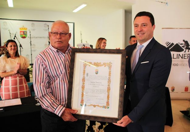 En nombre de la familia, Tomás Sepúlveda Fernández, bisnieto de Víctor Fernández Gopar, recibió en ceremonia concurrida, emotiva y solemne la distinción póstuma otorgada a su bisabuelo de manos del alcalde, Óscar Noda, en sesión de honores de la Corporación municipal celebrada este sábado en el centro cultural de Las Breñas, localidad sureña donde además fue descubierta la escultura encargada por el Ayuntamiento a la artista Cintia Machín para homenajear la vida y obra de ‘El Salinero’.