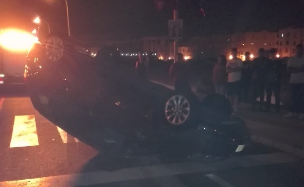 Este sábado por la noche se han producido dos accidentes casi simultáneos en dos puntos distintos de la Isla. Según ha informado el Consorcio de Seguridad y Emergencias del Cabildo en nota de prensa, primero volcó un coche que circulaba por la carretera que va de Playa Blanca a Femés y minutos más tarde lo hacía otro en plena Rambla Medular de Arrecife.