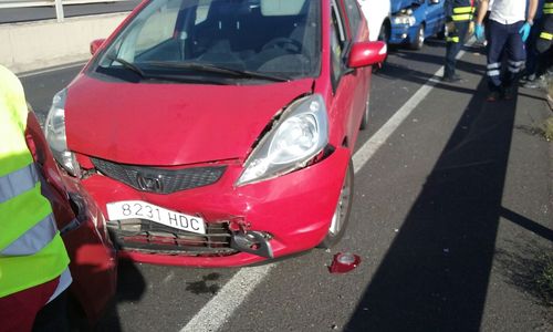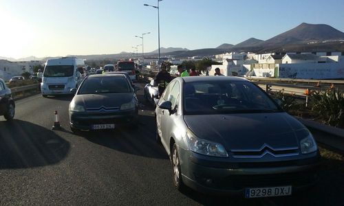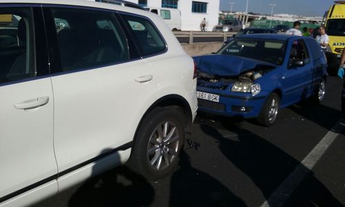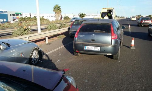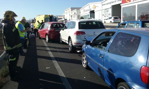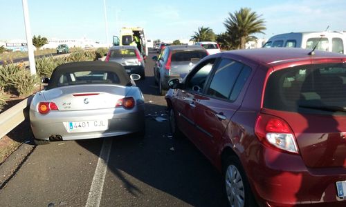En el primero de los tres siniestros, un choque múltiple ha provocado al mediodía que se produjera una importante cola de vehículos en la autovía de Arrecife. En el incidente, según ha informado a este diario el Consorcio de Emergencias del Cabildo, se han visto implicados al menos cuatro vehículos, que chocaron unos contra otros por causas que se desconocen.
