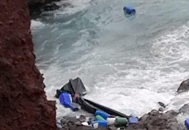 Según han informado varios testigos, que fueron los que tomaron las imágenes que han enviado a este diario, la barca chocó contra las rocas debido al mal estado de la mar.
