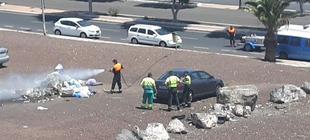 Según han informado testigos presenciales a este diario, el conductor, con muy buen criterio, se dio cuenta de que ardía la basura que llevaba en la parte trasera del camión, momento en el que, en lugar de parar en el lugar que se encontraba, decidió dirigirse hacia un solar que está en la entrada de Arrecife, en el barrio de Valterra, donde maniobró para evitar que se produjeran males mayores.