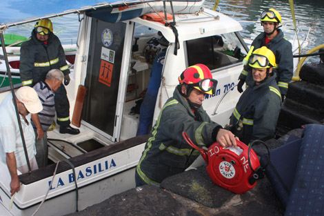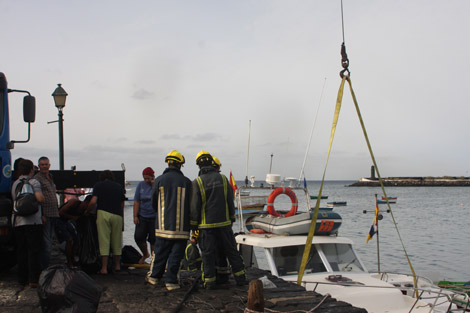 Los bomberos del Consorcio del Cabildo de Lanzarote rescataron en la mañana de este jueves a una embarcación que se había hundido enfrente del muelle de la Pescadería, en Arrecife.