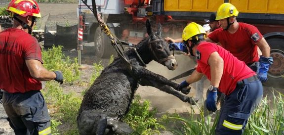 Según ha explicado el Consorcio, al llegar al lugar del servicio comprobaron que se trataba de un burro que había caído en un pozo después de que pasara por encima y cediera el techo que le habían colocado.
