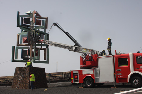 Los bomberos del Consorcio Insular tuvieron que acudir este jueves por la mañana al rescate del monumento de colores, obra de César Manrique, ubicado en Montaña Blanca, en el municipio de San Bartolomé.