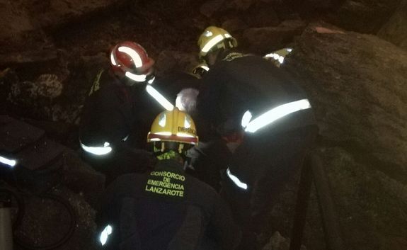 Los bomberos del Consorcio de Seguridad y Emergencias del Cabildo tuvieron que realizar este lunes una complicada actuación en el interior de la Cueva de los Verdes. Allí, según les alertaron, se encontraba una persona herida en una rodilla, que no podía caminar y que por tanto necesitaba ayuda para poder salir de la zona.