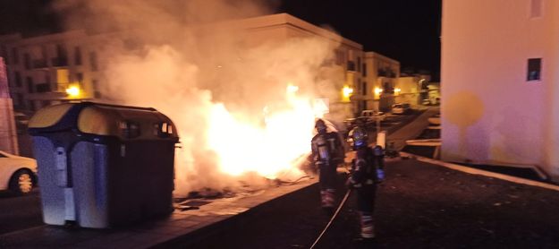 Cuando llegaron los bomberos ya había agentes de la Policía Nacional y de la Policía Local en la zona. El fuego afectó a cuatro contenedores de residuos orgánicos y uno de plásticos.