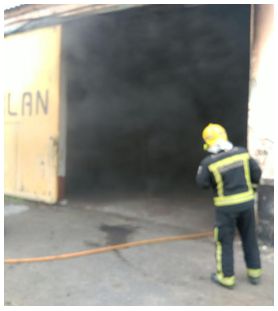 En el interior de la nave y en plena extinción, los bomberos realizaron otra valoración, comprobando que ardían motores, aceites y material con plástico". Una vez extinguido el fuego, se aplicó el turbo-ventilador para facilitar la eliminación de humos, visualizando que se trataba de una cochera con material de salvamento (ambulancia, motos de a gua, zodiac) que solo sufrió el efecto del ollín del incendio. "Se terminó entonces el servicio informando a la Policía Nacional para que hiciera informe con el personal de la Policía Científica", explica el ente insular dependiente del Cabildo de Lanzarote.
