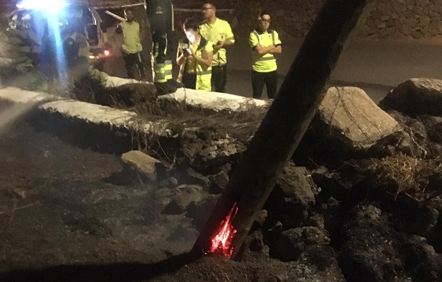 Los bomberos del Consorcio de Seguridad y Emergencias del Cabildo han sofocado este lunes de madrugada un incendio que se ha producido en un poste eléctrico en la calle San Isidro de Los Valles, en el municipio de Teguise.