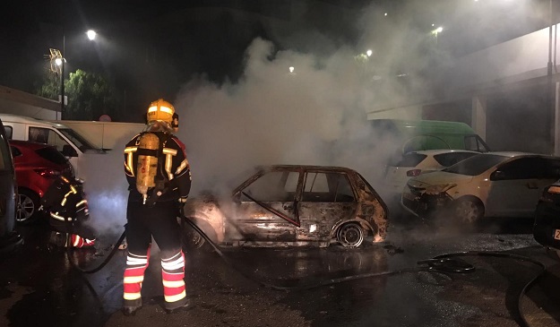 Los bomberos del Consorcio de Seguridad y Emergencias del Cabildo se han tenido que emplear a fondo este sábado de madrugada para sofocar el incendio que se produjo en un vehículo estacionado en la calle Teide de Puerto del Carmen, en el municipio de Tías.