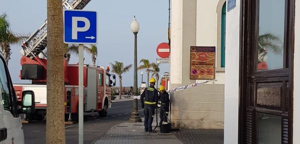 Los bomberos del Consorcio de Seguridad y Emergencias del Cabildo han tenido que intervenir a primera hora de este jueves para estabilizar la zona de la Avenida de Arrecife tras la caída de numerosos cascotes de la fachada de la Oficina Técnica del Ayuntamiento capitalino.
