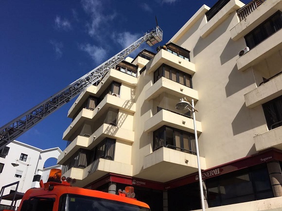 Según informan los bomberos del Consorcio insular de Seguridad y Emergencias del Cabildo de Lanzarote, alertados sobre las 13.29 horas por el CECOES 1-1-2 del Gobierno de Canarias de que en la calle Guenia habían caído trozos de madera desde un cuarto piso, los bomberos se personaron en el lugar.