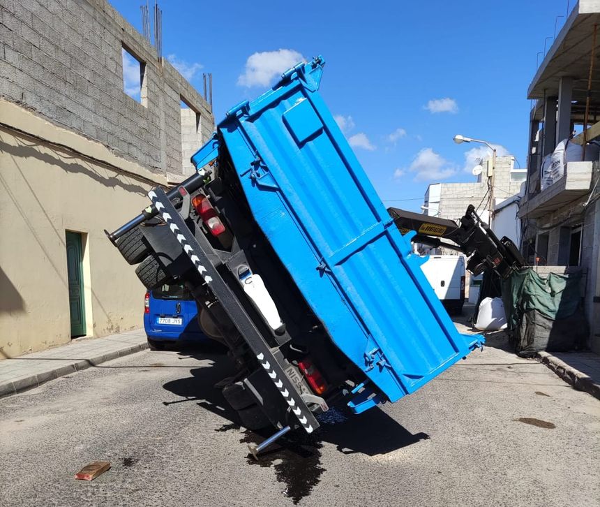 Un camión grúa ha volcado este martes en la calla Campoamor 44 de Argana Alta en Arrecife. Según la información aportada, el Consorcio de Seguridad y Emergencias fue alertado por el Centro Coordinador de Emergencias y Seguridad (CECOES) mediante una llamada telefónica para notificar un accidente de tráfico con vuelco en el que se requería la presencia del cuerpo de bomberos.
