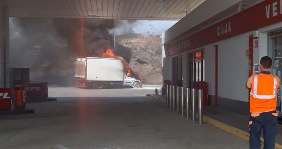 Un vehículo ha ardido en su totalidad este jueves al mediodía junto a la cafetería de la estación de servicios SPL de Tías. Debido a la cercanía del suceso con la cafetería, testigos presenciales del suceso pensaron en un principio que ardía el establecimiento de la estación de servicio, aspecto que ha desmentido posteriormente el Consorcio insular de Seguridad y Emergencias del Cabildo de Lanzarote. En concreto, el vehículo afectado era un camión de reparto.