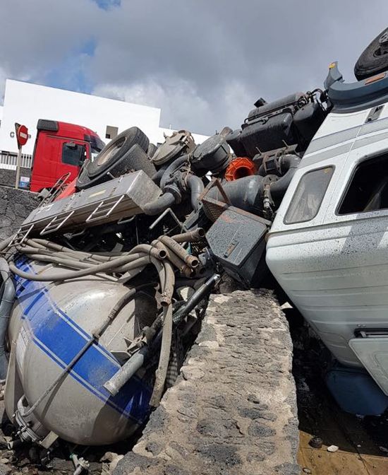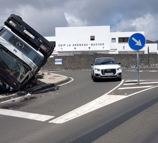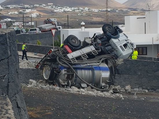 Según informa el Consorcio de Lanzarote, el accidente ha tenido lugar a las 11:50 horas. Como consecuencia del vuelvo del camión, de gran tonelaje, dos personas han resultado heridas, uno de carácter grave y otro moderado.