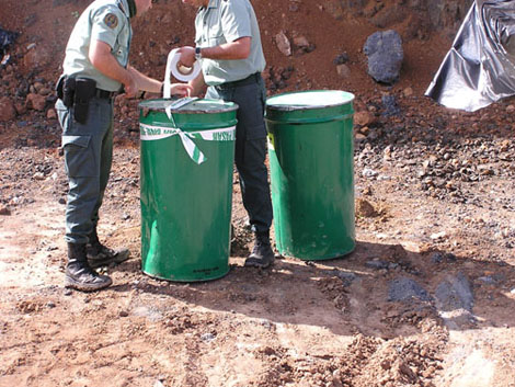 Otros bidones, en cambio, habían perdido "prácticamente su contenido", según la Guardia Civil, debido a que ya habían transcurrido varios años desde su enterramiento.