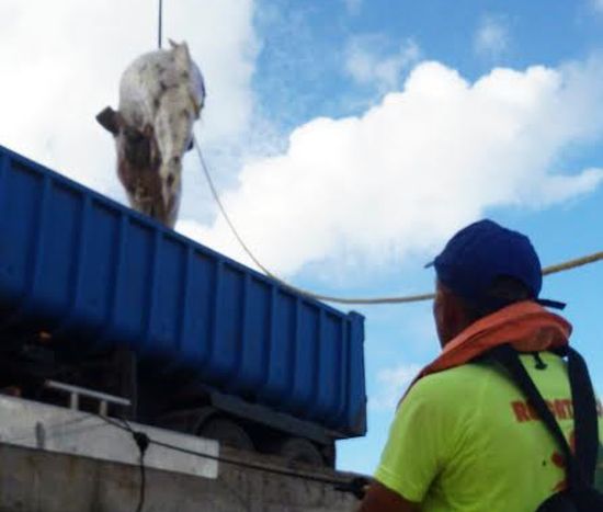 Emerlan explica en nota de prensa, por un lado, que trasladó hasta Órzola al cetáceo. Sobre las 15:30 horas la entidad fue alertada por el avistamiento de lo que parecía, en principio, un cetáceo de grandes dimensiones, que estaba flotando muerto al norte de Lanzarote, siendo un peligro para la navegación. Después de localizarlo a media milla del Roque del Este, se le dio arrastre hasta el Puerto de Órzola, siendo retirado a tierra en el mismo lugar.