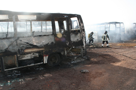 La pronta intervención de los bomberos, de la Policía Nacional, Policía Local, de Cruz Roja y de Protección Civil impidió que el espectacular incendio llegara a mayores, teniendo que lamentarse únicamente daños materiales en unas guaguas que, como muestran las imágenes, estaban en un estado deplorable y de auténtico abandono.