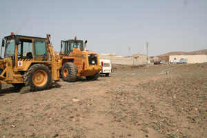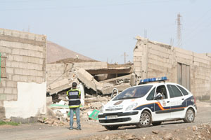 En la zona, que quedó precintada por la Policía, había hasta tres palas mecánicas del Ayuntamiento de Arrecife y el Cabildo de Lanzarote que comenzaron a retirar escombros para rescatar el cadáver.