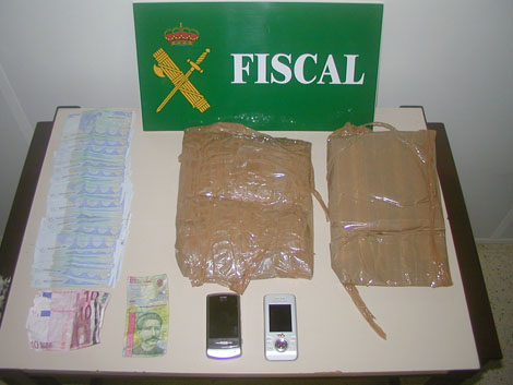 A continuación se solicitó la presencia de personal femenino de seguridad de servicio del aeropuerto para proceder al cacheo personal, resultando llevar dos envases que contenían supuestamente cocaína, con un peso total de 1,795 kilogramos. Igualmente le fue intervenido 1.520 euros y dos teléfonos móviles.