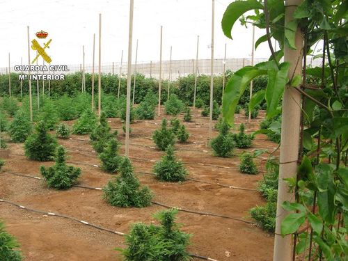 La plantación se encontraba en una depresión del terreno, lo que imposibilitaba su detección. Del mismo modo, el invernadero donde se encontraba, estaba rodeado de diversa vegetación a modo de cortina para ocultar lo que realmente se cultivaba en su interior.