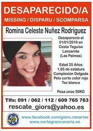Romina Celeste Núñez desapareció el día 1 de enero pero su marido, Raúl D.C., no lo denunció ante la Guardia Civil hasta una semana más tarde. Alegó ante tal demora que no era la primera vez que su pareja se marchaba. Según relató el marido de la joven, la última vez que la vio, ella volvió a pedirle dinero para que volviera a la Isla el hijo de Romina, que reside en Paraguay con sus abuelos desde agosto pasado. la pareja de la joven en paradero desconocido señala que no era la primera vez que Romina desaparecía así, como ya hizo en septiembre del año pasado.