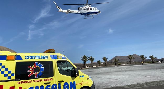 El personal del helicóptero A.H.21 del Grupo de Emergencias y Seguridad (GES) ha rescatado este jueves al mediodía a una turista que sufrió un posible esguince en su pierna izquierda mientras caminaba por una zona de difícil acceso en Caldera Blanca, en las inmediaciones de Mancha Blanca, en el municipio lanzaroteño de Tinajo.