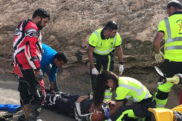 Un joven de 28 años de edad ha sufrido un grave accidente este domingo cuando circulaba con su quad por la carretera de Las Laderas, en el tramo que va de Teguise a Famara.
