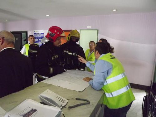 Todo ello se realiza en pocos minutos, tiempo que permite al jefe de emergencias de la Gerencia del hospital ordenar la evacuación horizontal de supuestos pacientes hospitalizados en planta hasta la zona designada de acogida de evacuación.