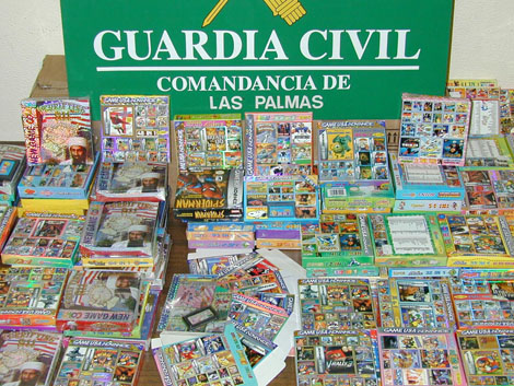 Otra de las intervenciones se desarrolló en la calle La Naval de la capital de la isla, en un local comercial donde se halló "abundante material falsificado, tal como 51.840 juegos de barajas de la marca 'Yugi Oh', 11.880 juegos electrónicos para consolas de la marca 'Nintendo', junto con 548 carteras de piel y otro tipo de accesorios".