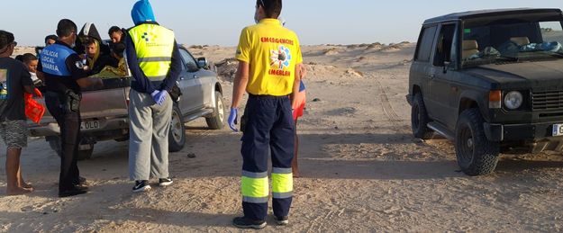 Junto a los voluntarios de Emerlan se encontraron también los servicios sanitarios de la Octava Isla y agentes de la Policía Local de Teguise que estaban de guardia.