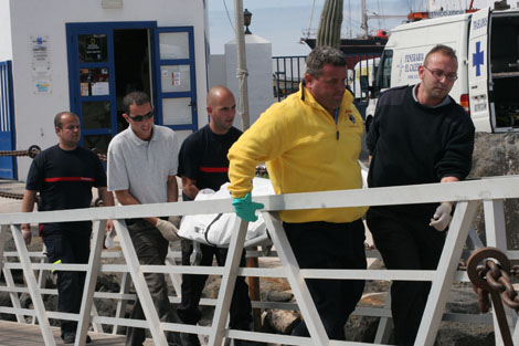 Las embarcaciones desplazadas al lugar se acercaron al punto de avistamiento para efectuar el rescate del cadáver, que al mediodía fue recuperado y trasladado por la Guardia Civil hasta el puerto de Marina Rubicón.