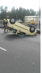 Una mujer resulta herida tras volcar su vehículo a la entrada de Arrecife