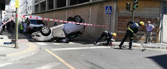 El resultado ha sido el vuelco de uno de estos vehículos y la forma peligrosa en la que han quedado sus ocupantes atrapados dentro. Por la hora y por el sitio, justo en el centro de la ciudad, en seguida se ha llenado el lugar de gente. La Policía ha acordonado el lugar y ha controlado el paso del resto de vehículos, y decenas de testigos se han puesto a hacer fotografías que han circulado por los distintos grupos de wasap, imágenes como las que publica este diario enviadas por varios lectores.