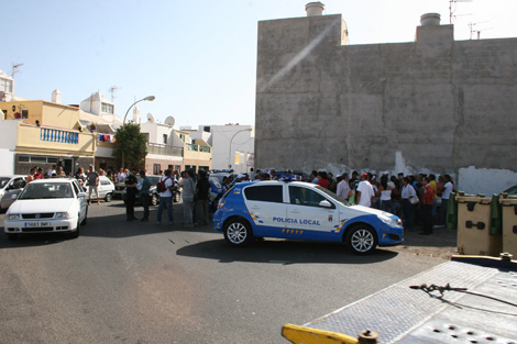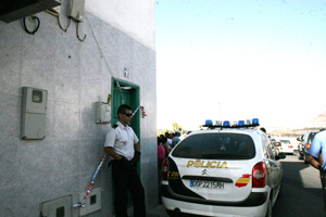 Los primeros agentes de la Policía Local de Arrecife llegaron a la zona tras recibir el aviso del 112, precintando todo el área.
