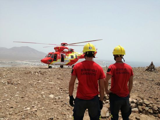 Por su parte, los bomberos del Consorcio insular de Seguridad y Emergencias del Cabildo de Lanzarote y la Policía Local de Yaiza colaboraron con el resto de los recursos intervinientes. Alertados por el 1-1-2, informa el Consorcio insular, los bomberos, que señalan por su parte que se trataba de una persona de unos 67 años, constataron que el afectado se encontraba dentro de la caldera de Montaña Roja sin poder moverse debido a un fuerte golpe en el tobillo, por lo que procedieron a su extracción con ayuda de la camilla hasta la falda de la Montaña, de donde fue recogido por un Helicóptero AH21 para ser trasladado al citado centro hospitalario.