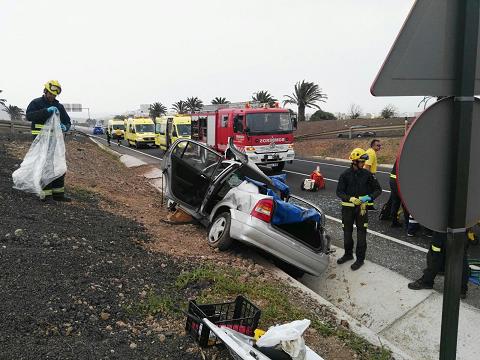 El Consorcio explica que este mismo sábado por la mañana también tuvo lugar otro accidente en la LZ-3, en Arrecife, sobre las 8.30 horas, aunque esta vez sin que hubiera ocupantes atrapados.