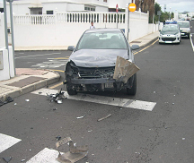 En la madrugada del pasado domingo se producía, en la zona turística de Puerto del Carmen, el choque entre dos vehículos por el modus de embestida lateral, cuando un turismo cuyo conductor era un extranjero residente que dio positivo en el test de alcoholemia y carecía de permiso de conducir, embistió a otro que circulaba con preferencia de paso, resultando heridos sus dos ocupantes, quienes fueron trasladados en ambulancia al Hospital Jose Molina Orosa de Arrecife .