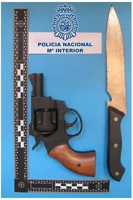 Las pesquisas policiales condujeron a la localización del individuo en las inmediaciones de un conocido centro comercial de Playa del Inglés, ocupándosele en el momento de su detención un revólver detonador y un cuchillo de unos 20 centímetros de hoja.