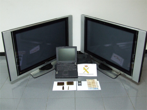 Los guardias civiles siguieron inspeccionando el paraje y a unos 100 metros del todoterreno hallaron los dos televisores y el portátil ocultos entre unos pedruscos.