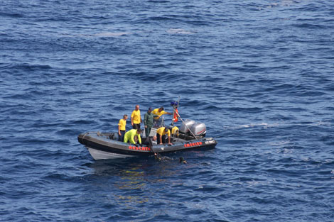 El dispositivo está formado por efectivos y embarcaciones de Salvamento Marítimo y Guardia Civil, buzos de Emergencias de Lanzarote, un helicóptero del Grupo de Emergencias del Gobierno de Canarias y agentes de la Policía Local de Yaiza.