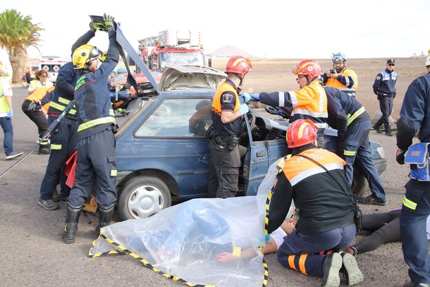 El Consorcio de Seguridad y Emergencias de Lanzarote realizó el pasado sábado, con éxito, un ejercicio simulacro de accidente de tráfico con varias víctimas politraumáticas implicadas en el siniestro.