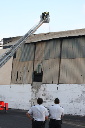 Bomberos del Consorcio Insular de Seguridad de Lanzarote y efectivos de la Policía Local y Protección Civil de Arrecife intervinieron este miércoles en la extinción un incendio declarado en las naves abandonadas de La Rocar, en el centro de la capital lanzaroteña, el segundo que se declara en una semana.