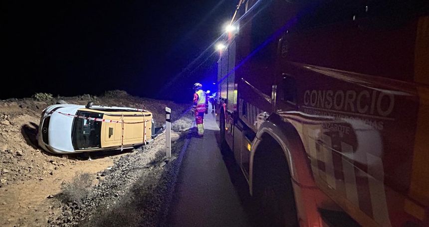 El Consorcio de Seguridad y Emergencias ha informado de que este miércoles a las 01:22 fue avisado por el Centro Coordinador de Emergencias y Seguridad (CECOES) sobre un accidente de trafico con una persona atrapada en la LZ-2, a la altura del km 27, en el municipio de Yaiza, por lo que una dotación de bomberos del Parque Sur se personó en el lugar.