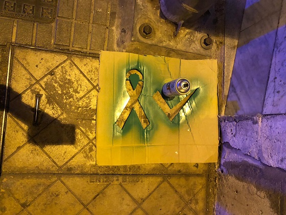 Agentes de la Unidad de Seguridad Ciudadana e Intervención (USCI) de la Policía Local de Arrecife sorprendieron el pasado 6 de diciembre, cuando realizaban funciones de vigilancia, a dos personas que mediante el uso de una plantilla y un spray realizaban pintadas por diferentes puntos de la ciudad.
