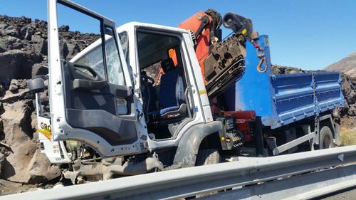 A esa hora se recibió en el 1-1-2 del Gobierno de Canarias una llamada comunicando una salida de vía con precipitación de un camión desde un puente de la LZ-2, a la altura del municipio de Yaiza.