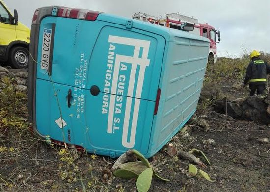 Un varón ha resultado herido este miércoles tras quedar atrapado en el interior de su vehículo después de que éste volcara en las inmediaciones del pueblo de Yé, en el municipio norteño de Haría.